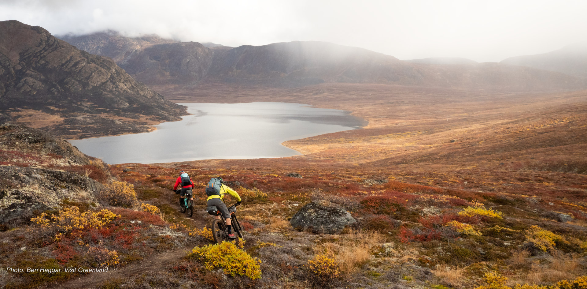 This expedition-style mountain bike journey follows Greenland’s Arctic Circle Trail from Kangerlussuaq to the coastal town of Sisimiut. Riding point to point across open tundra, lake country, and fjord landscapes, the route crosses the vast interior before gradually opening toward the sea and Disko Bay. A mobile camp supports the journey, with guides handling logistics and camp setup each day. You ride for five consecutive days, finishing in Sisimiut after completing the interior-to-coast crossing. Most nights are spent in tented camps beside lakes and valleys, with simple, functional comforts suited to the environment. After the ride, the trip continues at Hotel SØMA, where warm rooms and Nordic sauna and spa facilities offer recovery after days on the trail. The final full day includes a boat journey along the coast, stopping at historic Inuit campsites and hunting grounds within the UNESCO-listed Aasivissuit–Nipisat area.